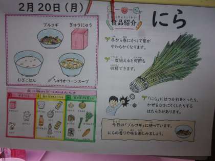 〇「プルコギ」は色あざやかで、入っていたにんじんはシャキシャキしていておいしかったです。にらはさわやかなにおいでおいしかったです。(4年生)