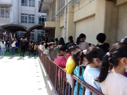 1年生もありがとうの気もちを6年生に送りました。言葉も歌も6年生に気もちが届くように、何度も練習を頑張りました。本番は、1年生も6年生もいい顔をしていました。花道でも、おめでとうと言ったり手を振ったり、ちからいっぱいお祝いをしました。