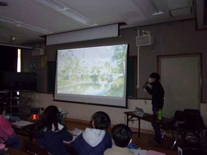 総合的な学習の時間は「わたしたちの濠川」の学習を行っています。今日は伏見観光協会の中川さんをゲストティーチャーにお招きして濠川のお話をたくさん聞かせていただきました。