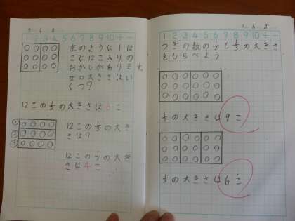 全体を2つに分けることと、全体を2つずつに分けるという考え方が区別しにくいようで、子どもたちは2分のや3分の数字がなかなか難しいようです。