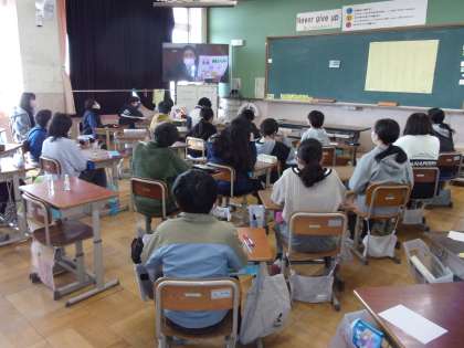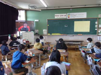 3月の朝会が行われました。校長先生や教頭先生のお話を画面越しではありますが、子どもたちは返事をしたり頷いたりしながら真剣に聞いていました。さすが5年生です!