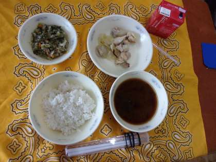 〇「あかだし」がとてもあたたかくておいしかったです。「けいにくのゆずしおやき」は、ゆずのいいにおいがして、肉がやわらかくておいしかったです。(1年生)