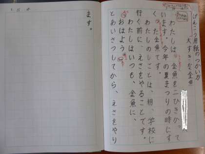 国語では、作文(原稿用紙の使い方)の復習をしました。