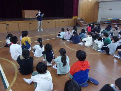 新学期が始まりました。今日は、体育館に4年生が集まりました。4年生に関わる教職員の方の紹介や学年目標をみんなで話しました。
