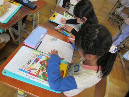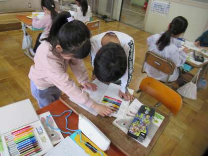 ペアやグループで協力しながら、何があったかなー?と思い出しています。