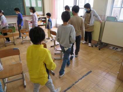 お楽しみ工作で手順書を見て、スノードームを作ったり、みんな遊びで椅子取りゲームをしたりして、みんなで楽しい時間を過ごすことができました。
