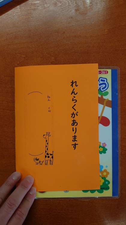 連絡がある場合はオレンジの紙を挟み、子どもに伝えたうえで持たせていただきますよう、よろしくお願いいたします。