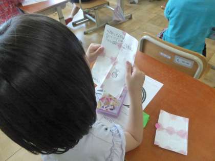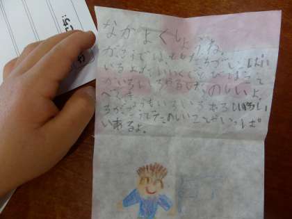 2年生からもらった種のプレゼントを開けてみると、手紙が入っていました。