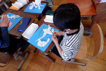 「へびの食堂」や「羽がついた電車」などユニークでかわいい作品がたくさんできあがっていました。