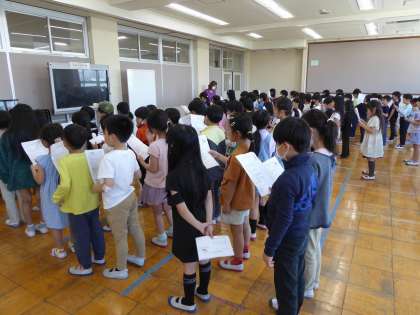 1年生を迎える会で、2年生から歌のプレゼントをすることになっています。