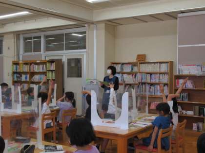 学校図書館の池端先生に図書館の使い方や本の分類などについて教えていただきました。