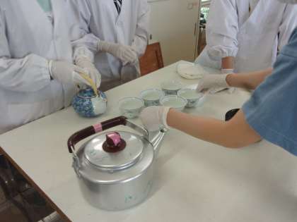 家庭科の授業で煎茶を入れました。「苦い」と言っている人もいれば,「おいしい!また飲みたい!」と言っている人もいました。また家でも入れてみてください。