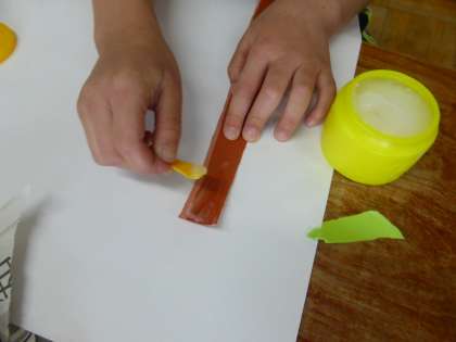 のりの使い方を確認し、ていねいに塗ることもできています。