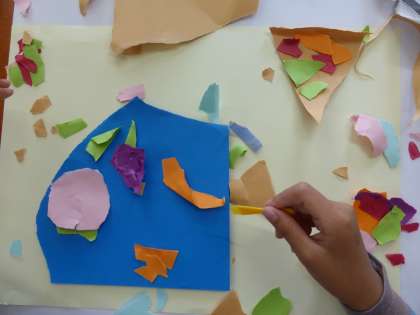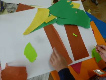 イメージが広がったら、のりではっていきます。