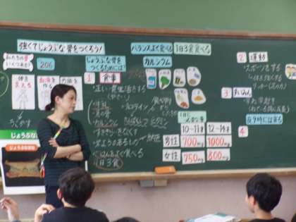 本日、片山先生に食の学習をしていただきました。1学期の内容は「骨について」でした!丈夫な骨を作っていくためには、どんなことが必要なのか?特に食事で「カルシウム」を摂る大切さを中心に教えていただきました。子どもたちも自分の食生活を見直して、大きく強くなるためにこれから何を頑張るか考えていました。