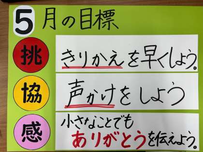 の3つの目標を1か月間意識して学校生活を過ごしていきます。