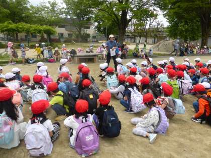 学校から出ての学習ですので、交通ルールや公園でのマナーを確認しています。