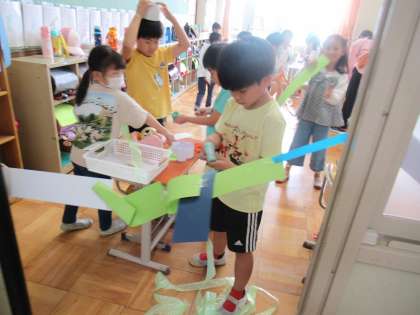 どんどん長く繋がり、最後には教室の端から端まで繋がりました!