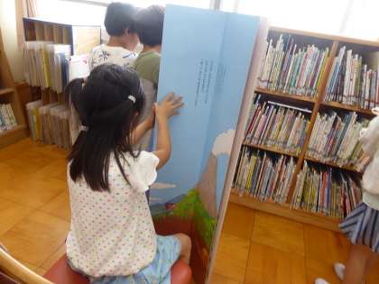 図書司書の先生に読聞かせをしていただいたり、巨大絵本を使って自分たちで読み合うなど本の世界を楽しんでいます♪
