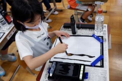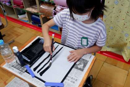 太い線や細い線、縦や横、ぐるぐるなどいろんな線に挑戦しました。