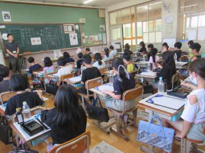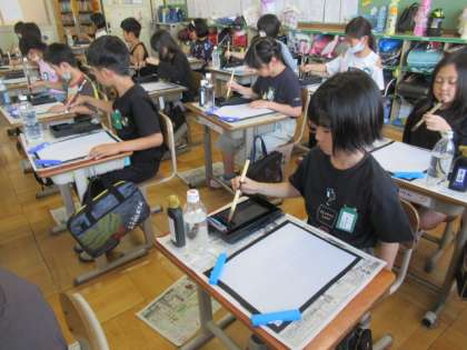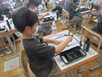 習字の学習が始まりました!背筋をピンと伸ばしてとてもいい姿勢。準備も頑張りました。