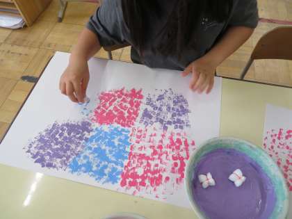 スポンジに絵の具をつけて、トントンしてあじさいを描きました。