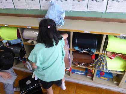お道具箱やロッカー、本棚や靴箱を片付けてみました。