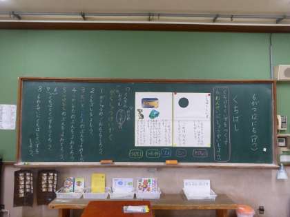 教師の示したモデル文から、くちばしクイズに何が書かれているのかをみんなで考えました。