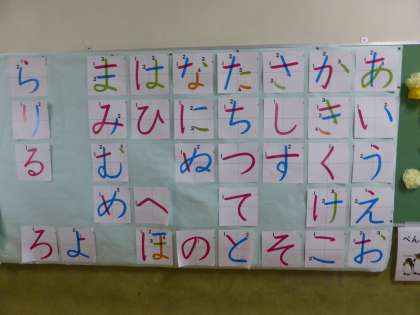 今までに学習した字をしっかりと定着させていくためにも、毎日の言葉見つけでたくさんのひらがなに触れていきましょう。