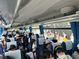バスに乗り込み、京都駅まで向かいます。予定通り無事に出発できました。