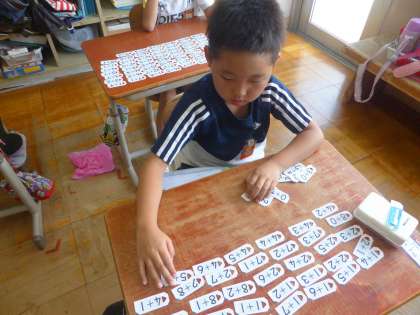 カードを見つけ並べる活動を通して、ある決まりを発見したようです。