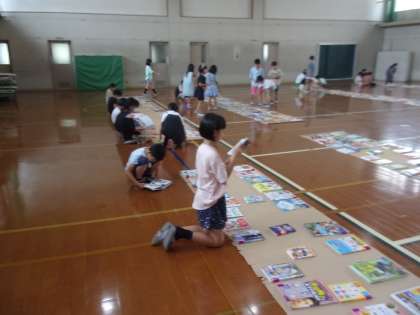 久しぶりに絵本を読んで楽しむ子や自分が好きな折り紙の本の前で立ち止まる子、怖い本を友達と二人で真剣に読んでいる子、すぐにお気に入りの2冊を選んで残り時間ずっと読むのを楽しんでいる子など、本に親しみました。