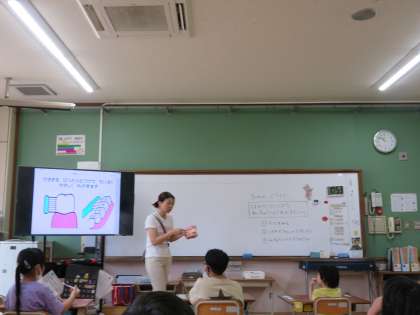 鏡をつかって自分の歯を見たり、模型を使って歯磨きの仕方をもう一度確認したりしました。