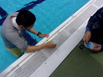 プールから採取した水は、京都府薬剤師会試試験センターで詳しく検査されます。