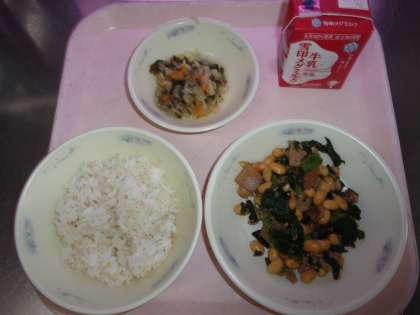 今日は、よくかんで食べる食材の【切干大根】や【大豆】、【こんにゃく】などが使われた献立でした!