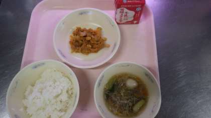 「はるさめスープ」は、給食のレシピをもとに家で作ってくれた児童もおり、「あ!家で作った!」と言っていました。優しい味わいで、たくさんの野菜のおいしさも味わえました。