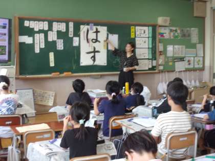 書写の学習で「はす」という文字を書きました。ひらがなの「結び」を書くのに一苦労していましたが、自分の持つ力を発揮し、集中して書いていました。
