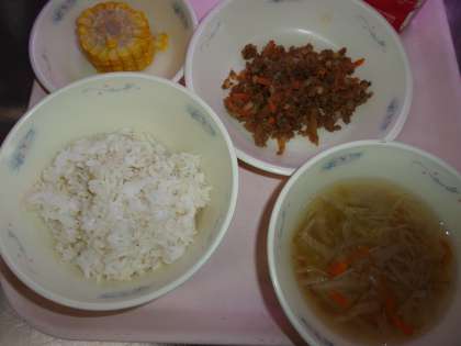 今日は、スチームコンベクションオーブンで「カットコーン」を蒸しました。甘みがあって、みんな上手にかぶりついて食べることができていました。
