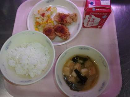 〇いつもおいしいきゅうしょくをありがとうございま酢。きょうのきゅうしょくの「ヒレカツ」は、ころもがサクッと、にくがフワッとしていておいしかったです。「やさいのソテー」は、いろどりがよくておいしかったです。「みそしる」はこころも体もあたたまっておいしかったです。これからもおいしいきゅうしょくを楽しみにしています。(2年生)