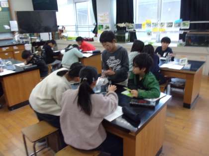 理科の学習で実験が始まりました。理科室を使っています。