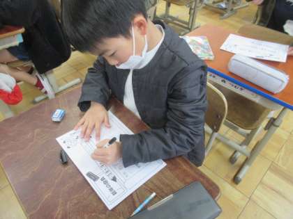新年の抱負を書きました。生活面・学習面で頑張りたいなと思うことをそれぞれ丁寧に書く姿が見られました。