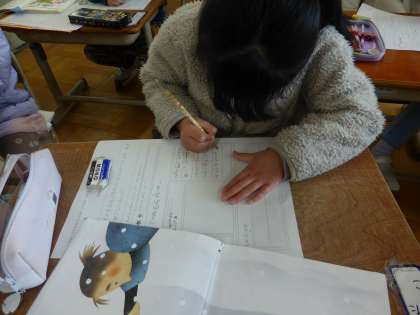 国語科「たぬきの糸車」でお気に入りの昔話を友だちに紹介します。