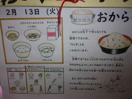 〇わたしは「おから」をはじめてたべました。おもったいじょうに、おいしかったです。またおいしいきゅうしょくつくってください!(1年生)