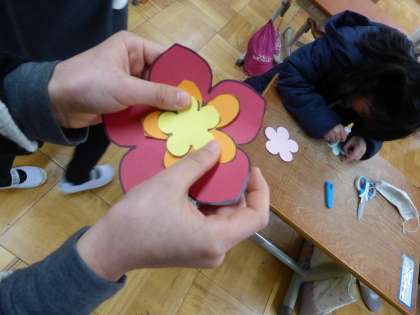 大・中・小の花びらを組み合わせてお花を作っています。