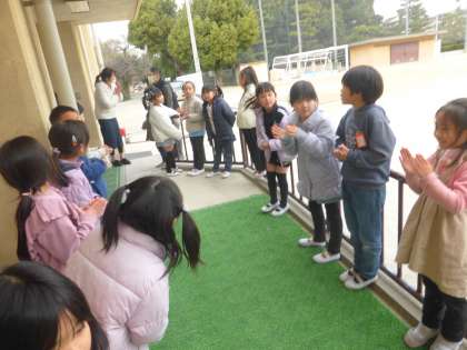 1年生は言葉とダンスと歌でお祝いの気持ちを表現しました。