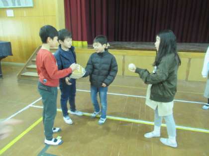 大谷選手から届いたグローブでキャッチボールを体験しました。軽くて柔らかい素材のグローブでした。初めてグローブを付けた人も多かったようです。この中から未来の野球選手になる人もいるかもしれませんね!