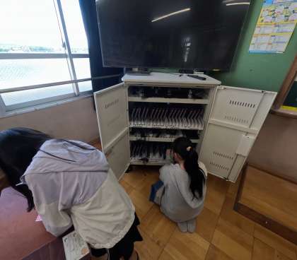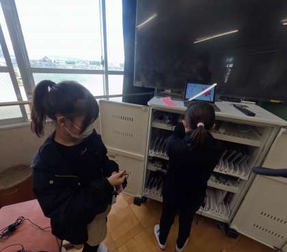 昨日の学年旗に加えて、今日はGIGAのBOXの充電器の整理をしてくれました。