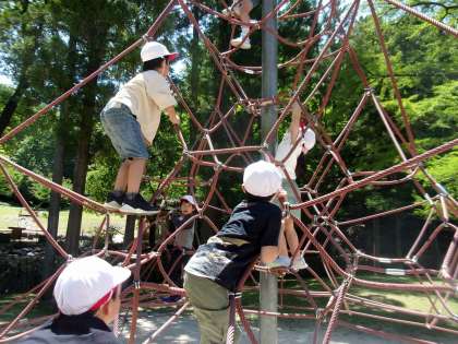 複雑な総合遊具を渡ったり、迷路を楽しんだりと、子どもたちは思い思いに自由時間を楽しみました。
