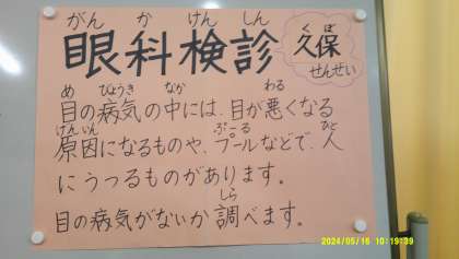 5月14日、全校の眼科検診が行われました。