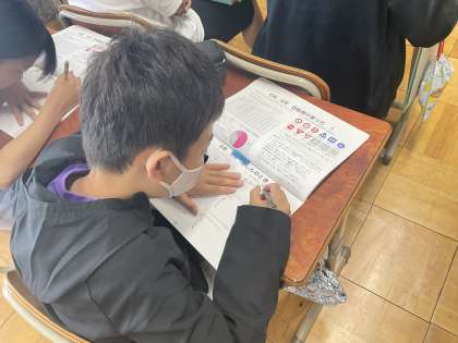 安全ノートを活用して、地震が起きた時にどうすべきか考えました。